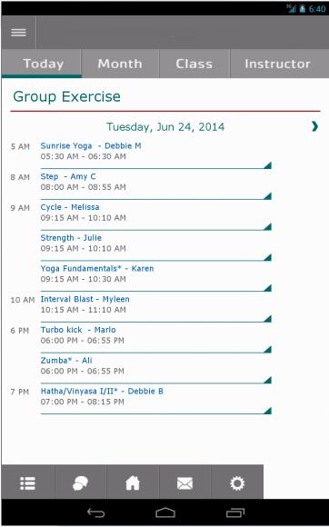 แอพนี้มีตารางการออกกำลังกายกำหนดการทางน้ำข้อมูลโปรแกรมและเหตุการณ์และสถานะสนามกีฬา